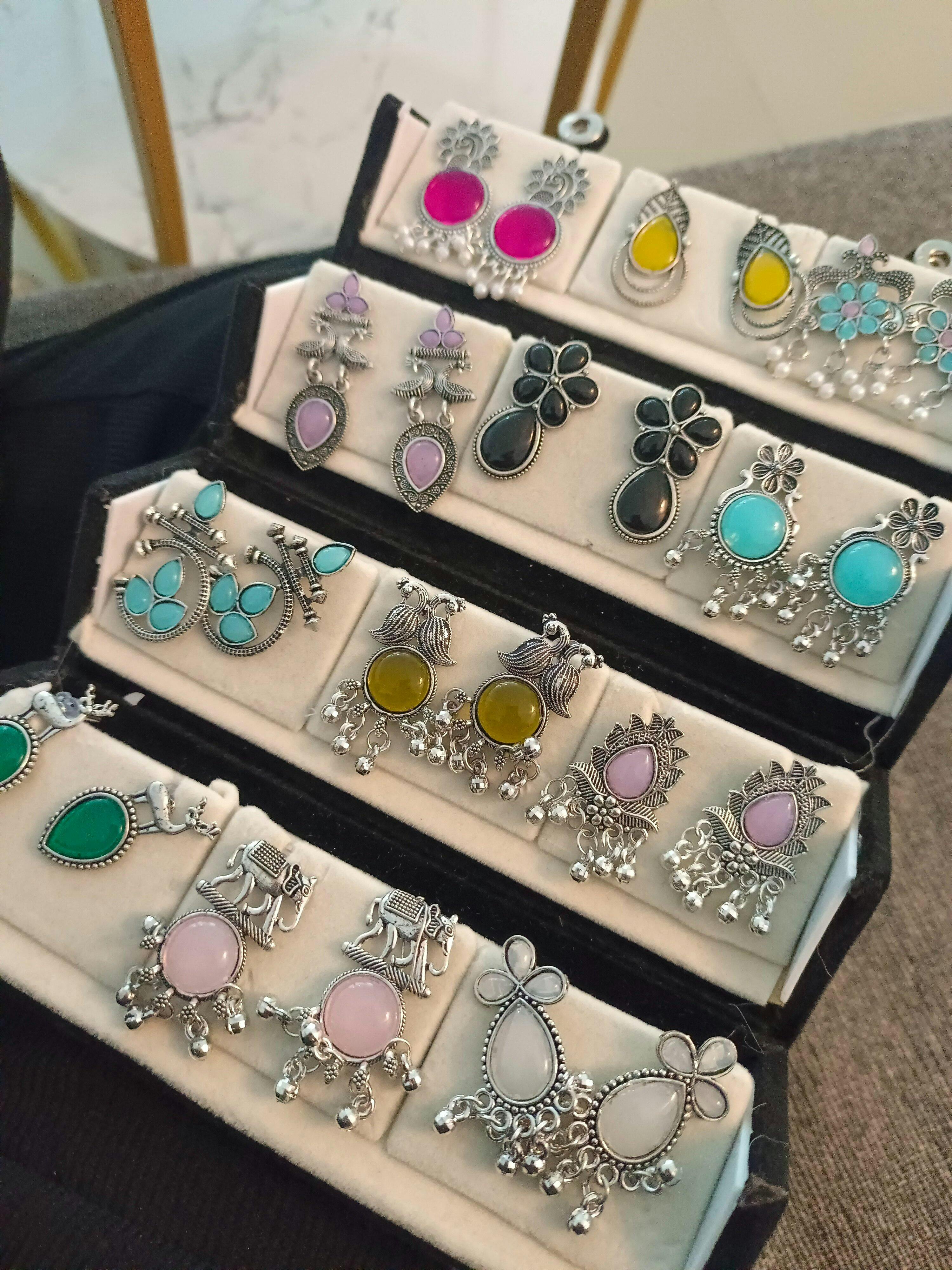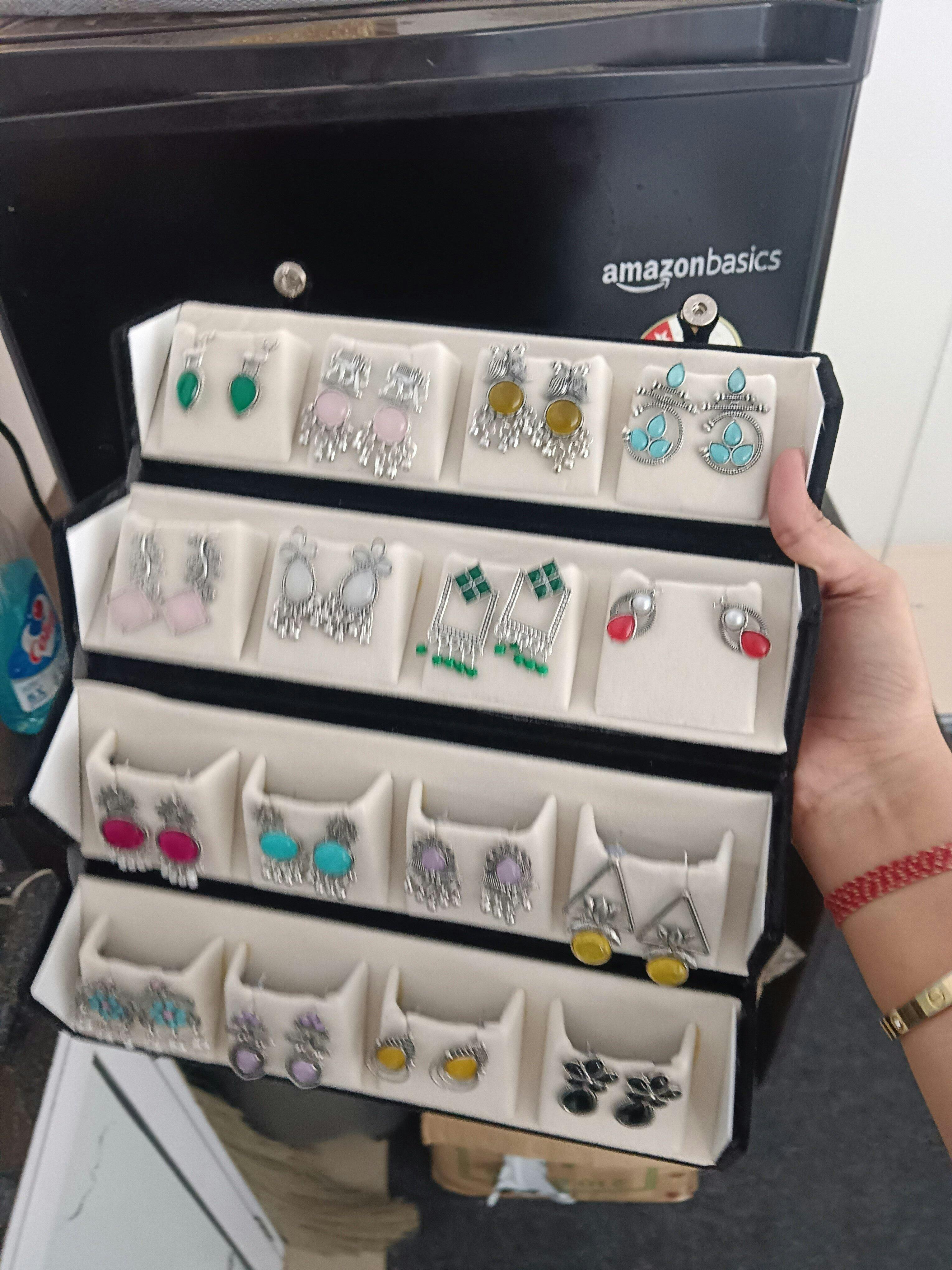 A luxurious foldable velvet box filled with 16 colorful, handpicked stud earrings vibrant, elegant, and designed for every look. Perfectly organized, super travel-friendly, and the kind of stylish collection every woman wishes she had.